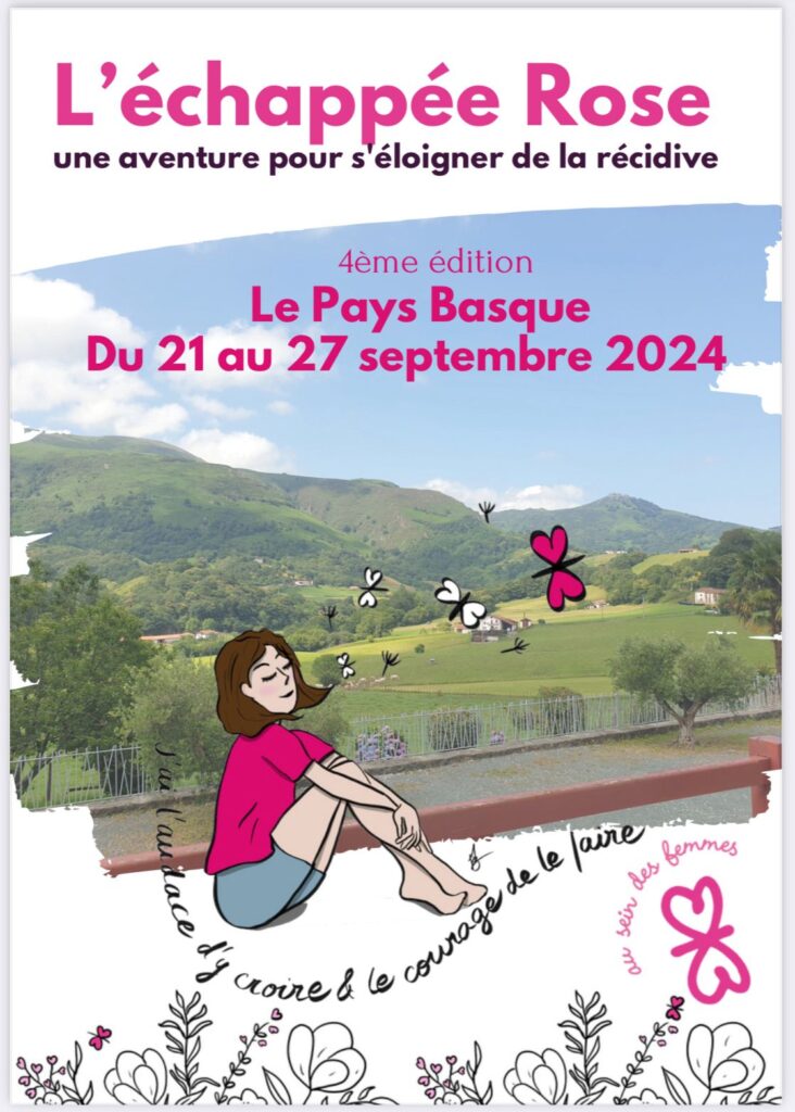 Cet événement bisannuel organisé fin septembre est né en 2016 : organiser un trek sur plusieurs jours pour découvrir du pays et se dépasser… Véritable aventure humaine et physique, l’Echappée emmène une vingtaine de femmes après leur traitement, pour un séjour alliant activité sportives et de bien être. Un temps pour se dépasser, pour prendre soin de soi, pour rire, pour pleurer, pour faire un trait sur la maladie tout en conservant la sororité née au sein de l’association.